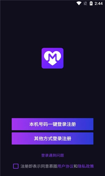 1、下载安装APP后打开软件,提示同意与否,点击同意进入注册界面;
