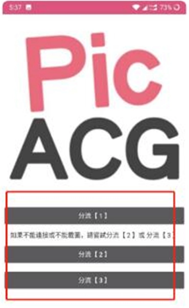 1. 下载并完成安装后,打开软件,点击【分流1】,若无法打开,则选择【分流2】或【分流3】。