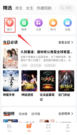 1. 打开芝士小说APP,在首页的导航栏中选中“排行榜”栏目,该栏目会呈现各类热门小说榜单。