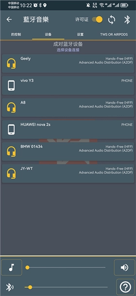 4、蓝牙连接,通过蓝牙连接多个设备,如音响、头戴式耳机等等,可以随时体验心仪的音乐。