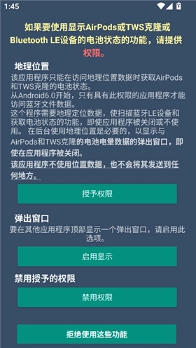 4、要将应用程序与Airpods或TWS蓝牙设备一起使用时,必须提供“位置”权限哦