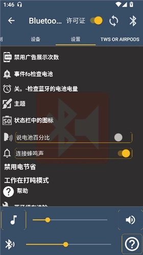 3、在设置界面中你还可以检查蓝牙电池、设置主题、清除缓存等操作