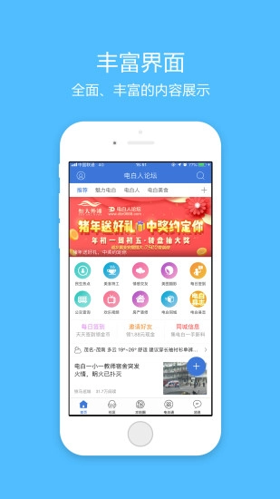 电白人论坛app由茂名市正东网络科技有限公司负责运营。这是一款专注于电白本地生活的社区应用,涵盖了当地新闻城事、线下活动、社区交流、商家信息以及特卖活动等诸多内容。秉持全城生活平台与商业综合体经营管理的理念,我们的app着力构建一套完备的o2o生态智能服务系统,该系统是特色app与后端服务平台相结合的综合性解决方案。