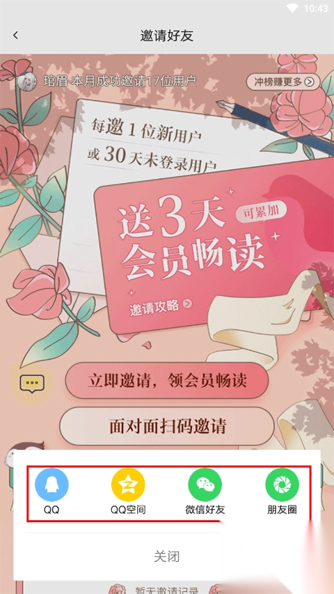 3、有两种邀请方式,其一为借助qq、微信等社交平台来展开分享。