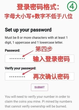 第四步:设置密码,密码需要包含数字和大小写字母,确认密码后继续。