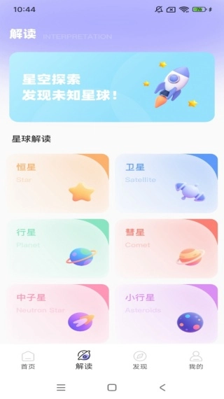 3、进入解读专区,支持恒星、卫星以及彗星、小行星等资源都有。