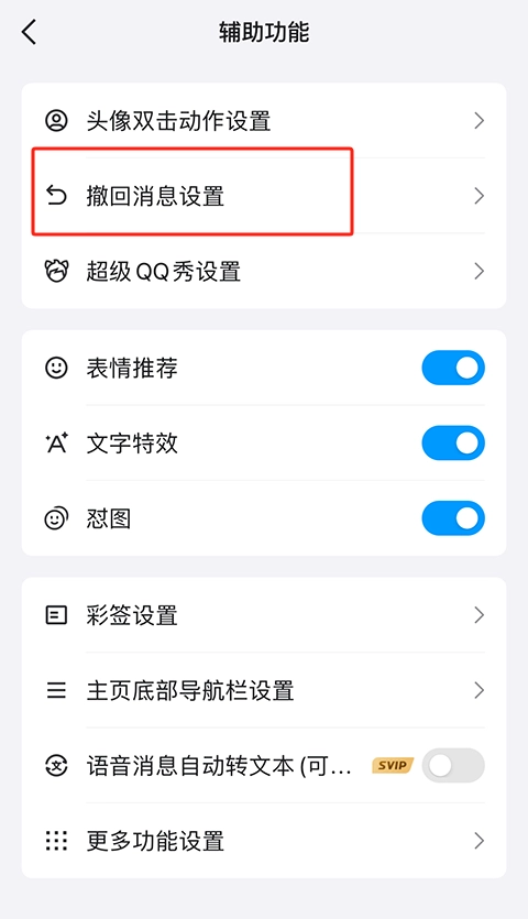 4、然后再点击撤回消息设置。