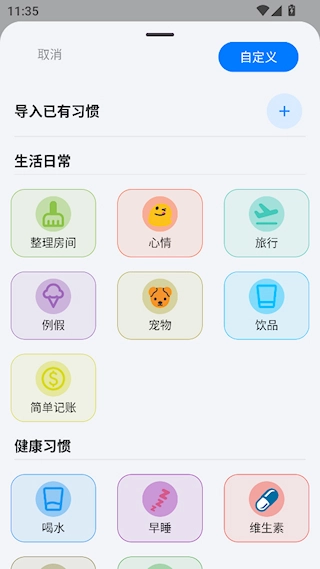 2.自定义添加各种习惯内容,还可设置标签管理
