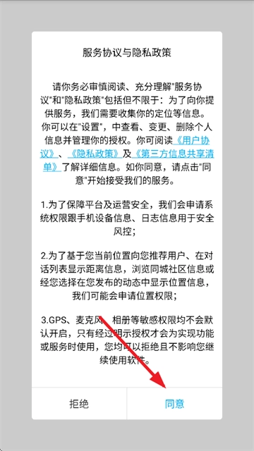 2、点击同意隐私政策