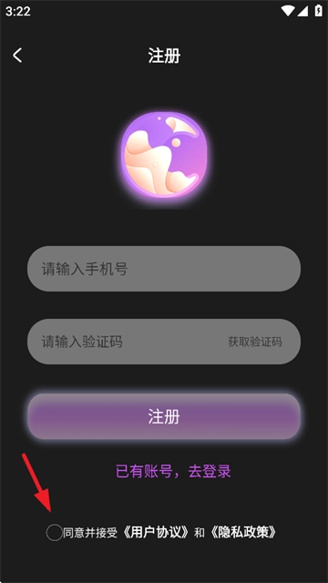4、依次输入手机号与验证码,并勾选用户协议。