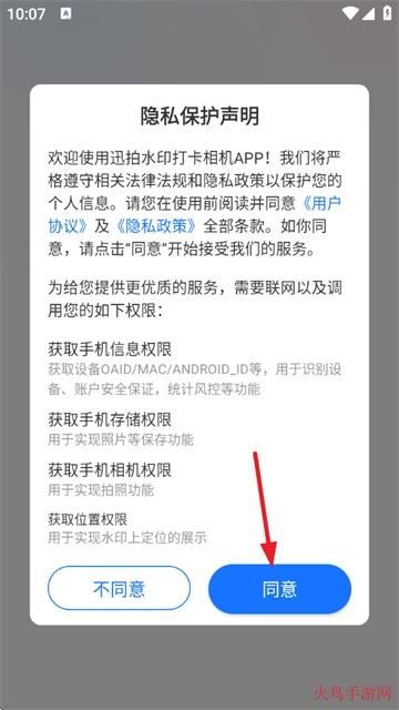 1、第一步,打开app,阅读隐私保护声明后点击同意。
