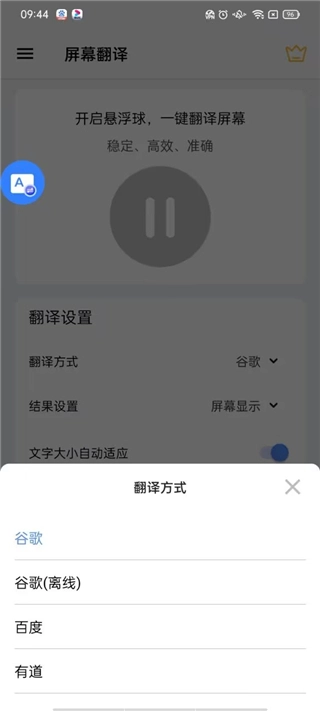 提供谷歌在线、谷歌离线、百度翻译、有道翻译这4种翻译方式的支持。