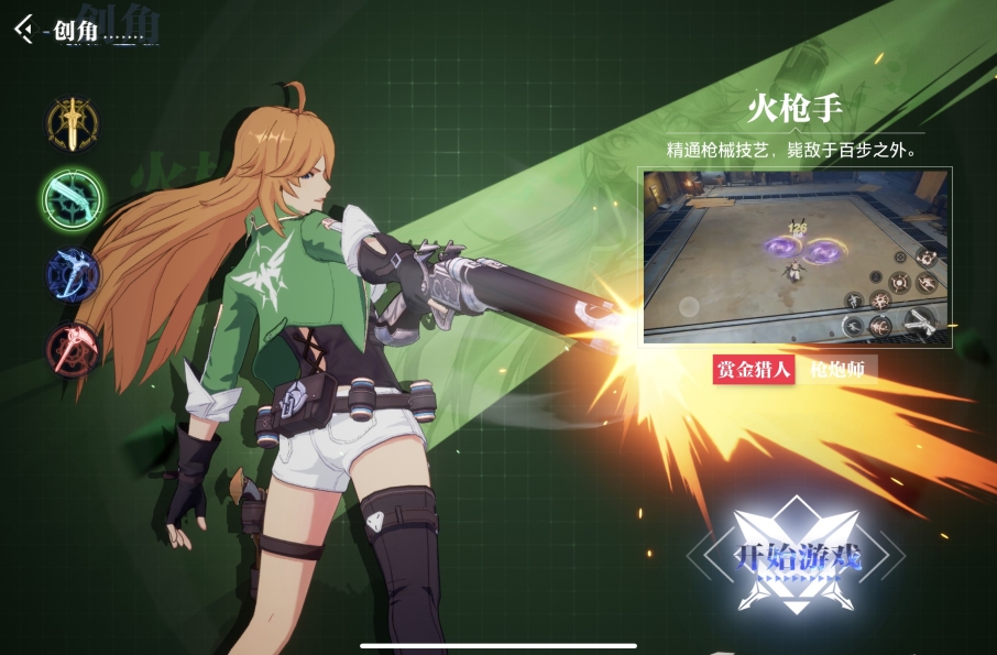 攻速属性类枪手,大招具备远程攻击与大范围伤害能力!技能攻击耗时较长,技能衔接相对简易。不过需留意,此角色属于消耗型,在衔接普通攻击时要注重走位!其攻击属性有四种,能够随时切换。该角色没有近战攻击手段,血量不多,惧怕敌人近身。