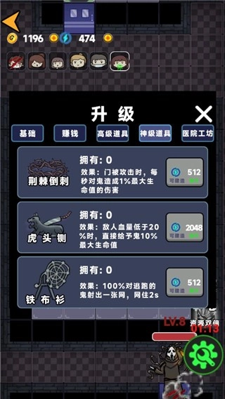 4、当血量较低的时候,要及时升级门来恢复其耐久度。游戏结束后,前往神秘商店提升自身属性,以便更好地应对猛鬼。