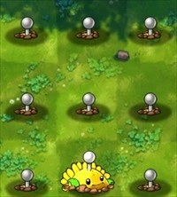 8、向日葵+土豆雷=阳光土豆雷,在待机的同时生产阳光,爆炸获得阳光