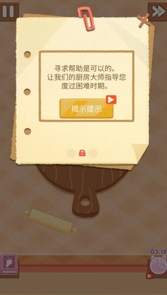 2、制作界面中,选择食材的制作顺序,如果有不明白的,点击左下角的灯泡标志就可以获得提示了。