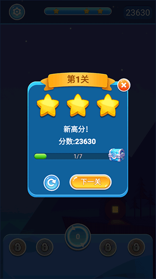 4、最终达成条件即视为挑战成功,根据得分获取星星数量并解锁下一关卡。