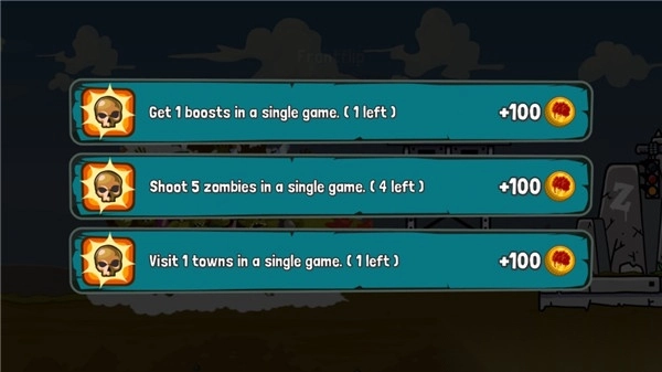 在飞行途中,难免会遭遇僵尸。此时,就得动用你手中的机枪,对它们进行扫射。只需点击屏幕空白处,就能发射子弹。不过,更优质的武器还得从商店购买哟~