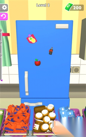 2、在这里想办法将冰箱装满吧,在游戏中大家可以看到关卡中给了你各种各样的物品。