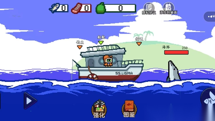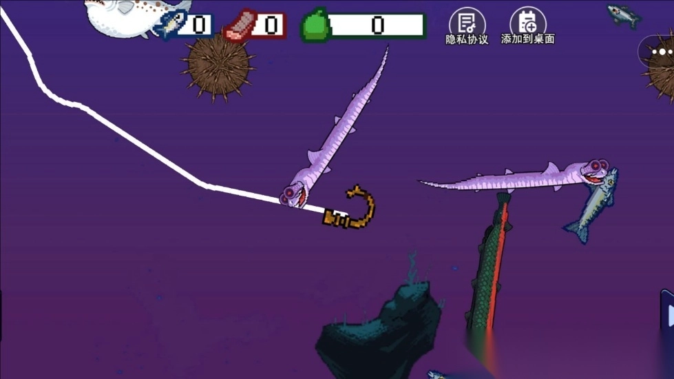 1、钓鱼环节,通过点击或滑动操作钓取不同种类的鱼,获取刮鳞原料。