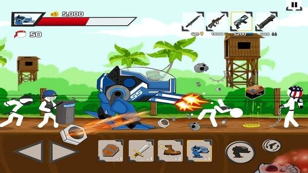 4、同时获得金币和各种道具向敌方发起进攻,分数越高就能解锁越厉害的武器哦,看看自己能不能战斗到最后