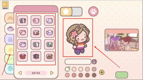 1、玩家通过点击屏幕,可选择各类不同的建筑或装饰元素,同时还能够对自身的装扮进行自定义设置。