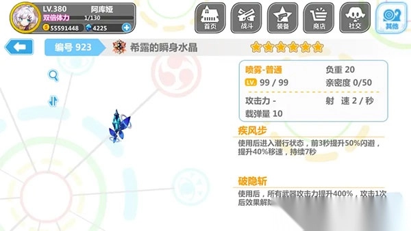 1、祈愿装、希露的瞬身水晶(水晶)、获取难度高。水晶是当之无愧的辅助之王,出现至今,仍然没有任何一个辅助能够动摇它的地位。使用进入潜行状态,提升闪避移速。且攻击力提升4倍,攻击一次效果解除(放置类出去,丢人)。适配极大部分关卡,唯一克制水晶的就是夏姬八飞的飞飞娘,一旦失去目标就放飞自我。