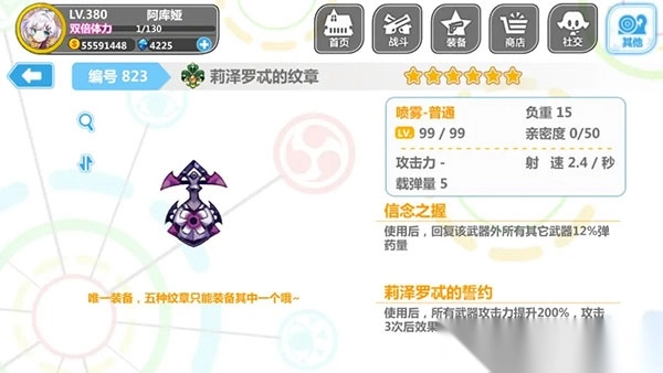 2、祈愿装、莉泽罗忒的纹章(三倍纹)、获取难度高。上面因为有辅助水晶扛着,所以待遇很差。跟兄弟暴击纹章又合不来,至今都不受待见。但仍然是一款优秀的辅助,有两个纹章,可以考虑进化它。配合海拉背叛食用感良好,同样适配大部分关卡。