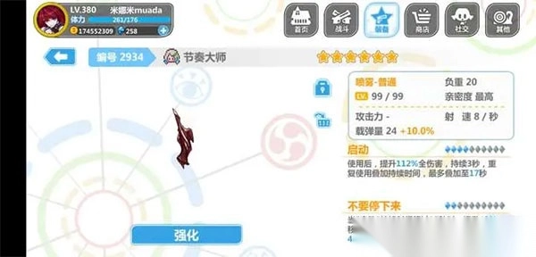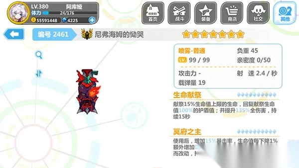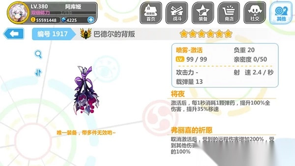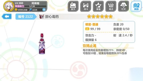 5、活动地图产出的装备醉心**(**),获取难度处于中等水平。每次使用能增加25%的伤害,效果可叠加10层。它是大佬、巨佬们钟爱的攻坚神器之一,问世后频繁现身于各大高难度地图。然而,对于健忘党和手残党而言,它堪称噩梦。要是使用不当,很可能瞬间“去世”。新生篇中锁武器的僵尸娘,也是这件武器的克制点之一(就如同有些人看似活着,实则已“死”)。建议将其满破。