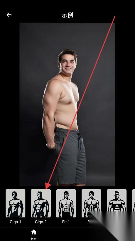 1、首先,点击底部的“Giga1/Fit1”等体型,选择初始模板!仅需3秒,即可应用到示例图。无需纠结,每次切换模板,都能直观看到身材差异,操作超级顺畅。通过这种方式,快速锁定目标塑形方向。