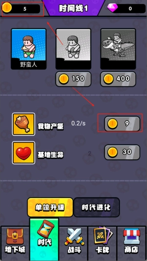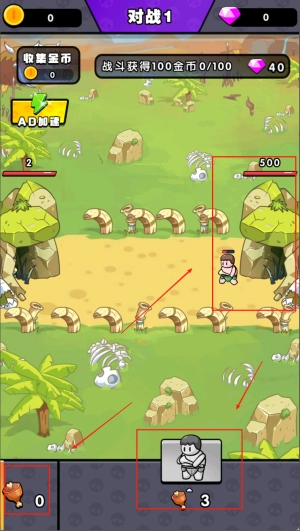 2、在这里,需要积攒食物点数来出兵,攻打敌方,直到对方血量归零即可胜利。