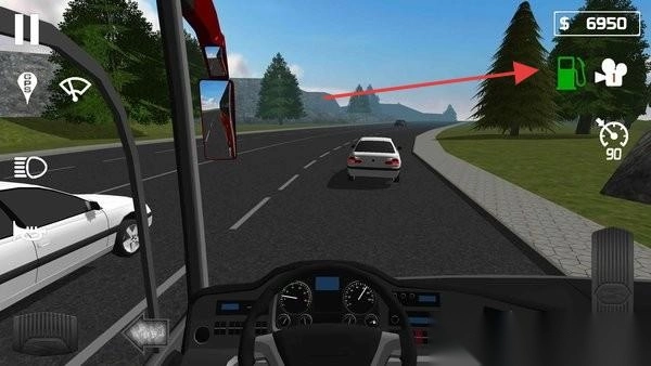 1、驾驶时留意右上角油标,适时点击加油站图标,给巴士加油。