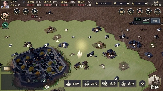 进入游戏后,粮草、木材、石料、铁矿等基础资源会自然增长,而主城升级需要消耗这些资源。通过对主城建筑进行升级,能够提高每小时自然增长的材料数量。另外,占领外围的资源地,同样可以提升资源的产出量。