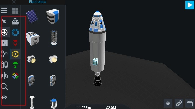 1、【航天器设计】 自由组合各种部件,打造独特的飞船、火箭和载具。
