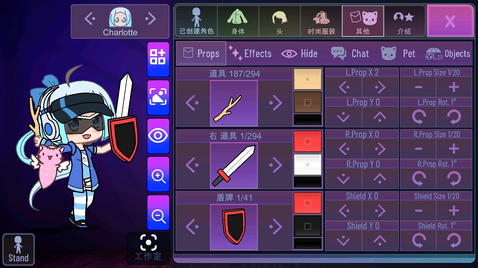 2、还可以为其加入武器、宠物等物品。