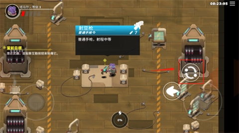 3、当在游戏地图中遇到武器时,靠近武器,会出现交互按钮,点击交互按钮拾取武器。