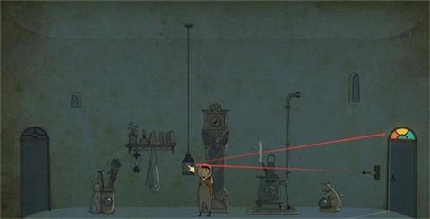 这一关卡的信息相对隐晦,关键信息隐匿于中间墙壁的4幅图里。第一步,观察两侧门处月亮呈现的状态;接着,依据图中月亮的状态以及兔子手指的指向,来决定要前往哪扇门;当把这四幅图上的蜡烛都点亮,就能顺利通关。
