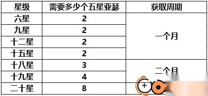 1、率先登场的是亚瑟,先讲讲亚瑟的获取途径。亚瑟身为一名人族探员,获取方式较为轻松,平时能通过高级召唤获得,而且特异召唤的概率高达1.88%。另外,还能够通过特异商店兑换以及精英商店兑换得到。在无活动影响的情况下,通常一个月可以积攒8 - 12个本体。具体的培养周期如下图所示。