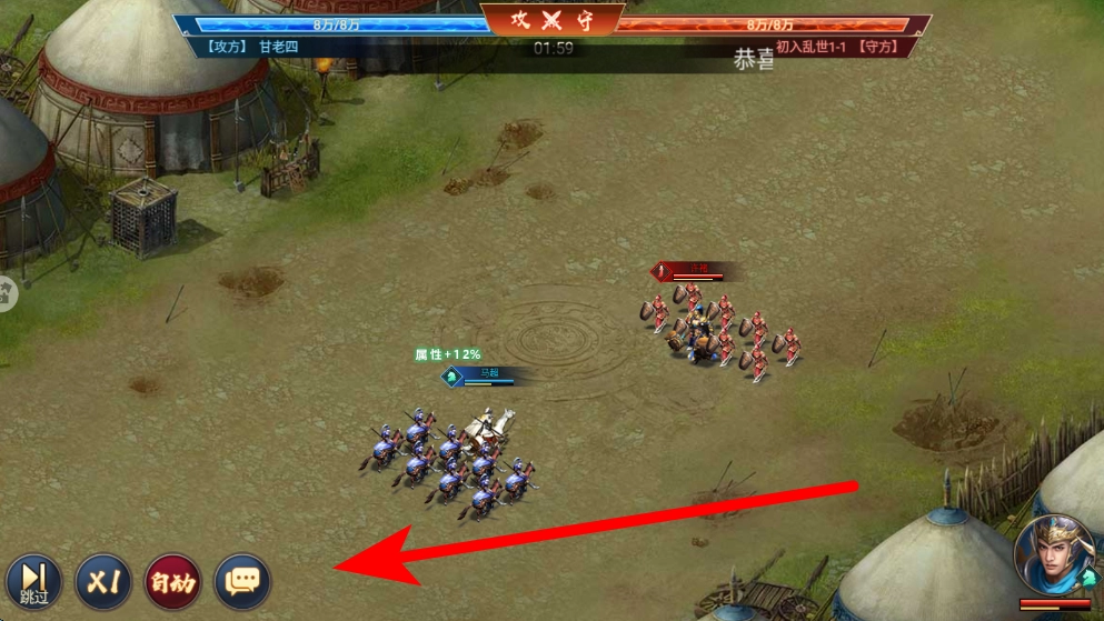 1. 第一步参与攻防战斗,此时能查看攻方和守方的兵力等相关信息。在界面下方设有跳过、自动等功能按钮,需依据战斗实际状况,挑选恰当的功能,从而指挥部队与敌方进行战斗。