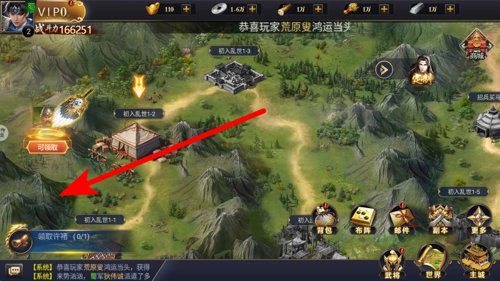 3、接着推进主线关卡,在世界地图上,你会看到诸如“初入乱世”等不同的关卡标识。点击相应的关卡区域,就能进入该关卡,持续推进主线剧情,感受各式各样的战斗与故事。