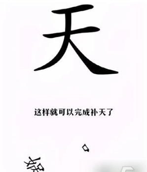 把“天”字里的“二”这个部分,移动到“井”字里面“人”字的上方,如此一来,“天”字就变成了“人”字。