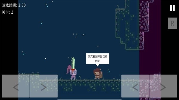 简易操控:相关控件极易理解。左上角的箭头用于移动,右上角的箭头则是操控剑的移动。在游戏中,按下R键即可实现重生。