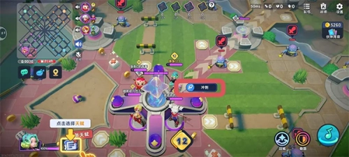1、当点击冲刺人物后,该人物会朝着箭头所指方向迅速移动,直至抵达己方的第一座防御城才会停下。