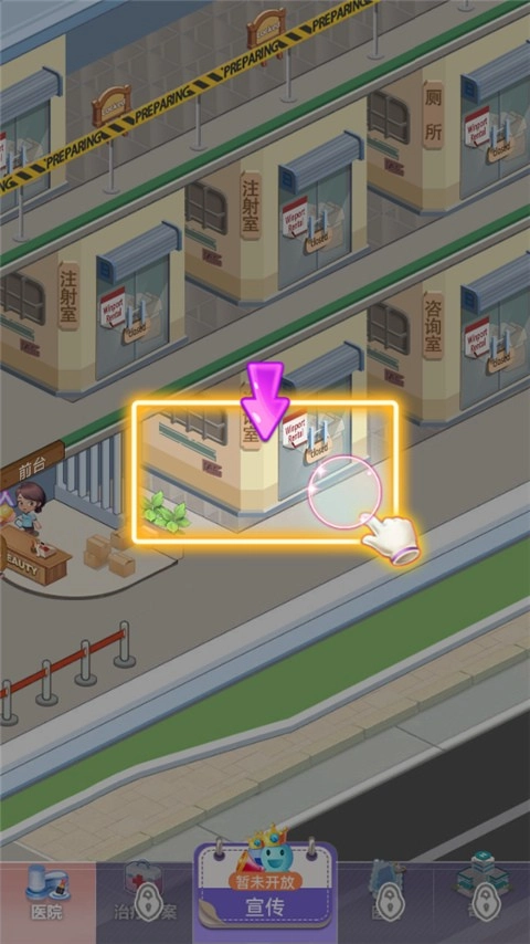 10、根据不同的病情,必须做到对症下药。为此,我们需要设立一个注射室,只需点击建造便可完成。