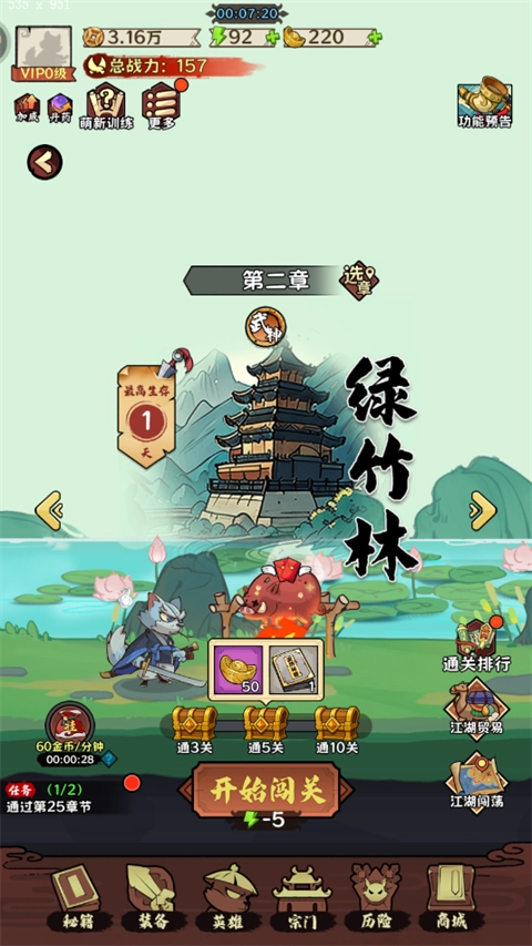1. 在闯关、扫荡、挂机以及商城抽奖过程中,均有获取武功秘籍的机会。