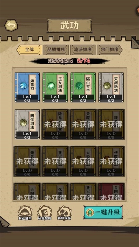 2、当获取到新的武功秘籍,便能解锁相应武功。后续若再次得到相同的武功秘籍,则能够提升该武功的等级,进而增强其威力。