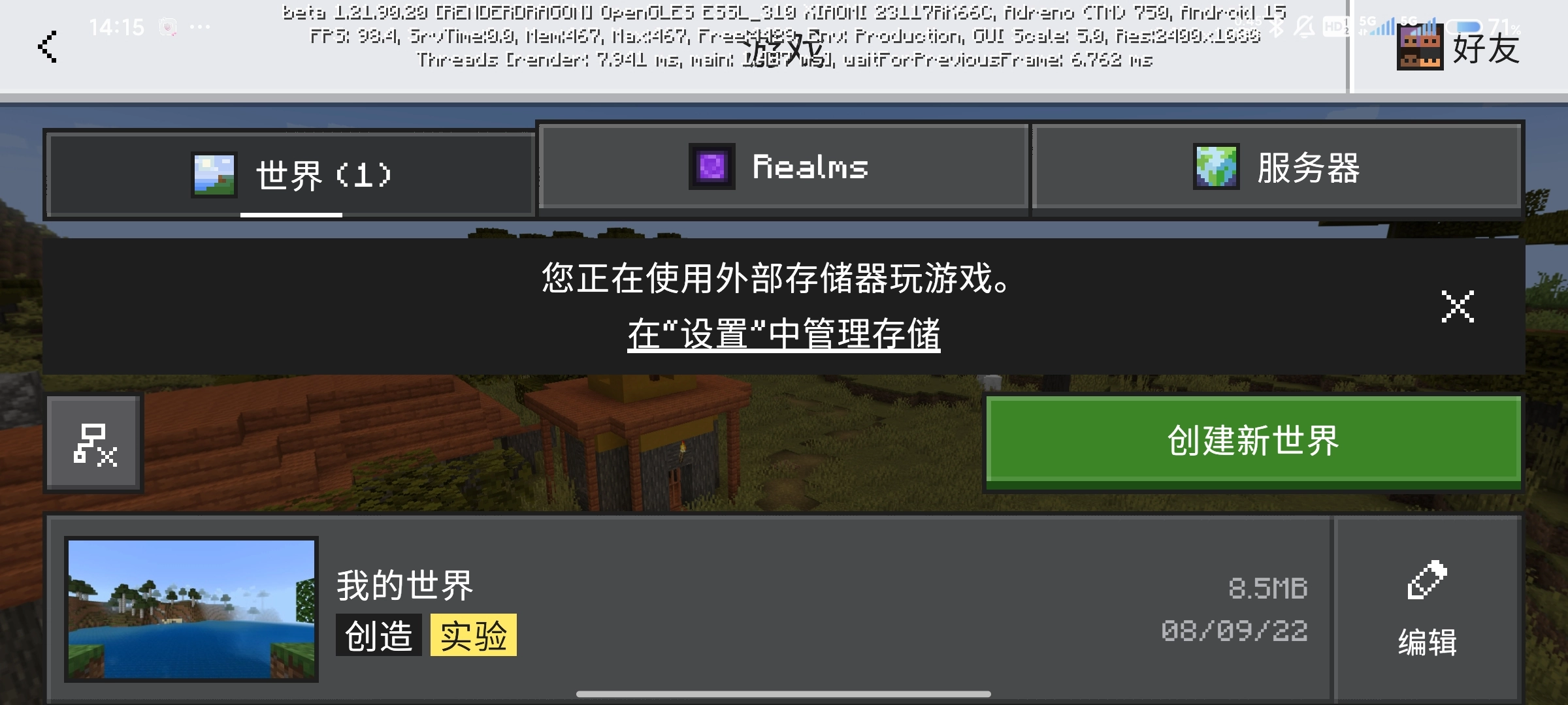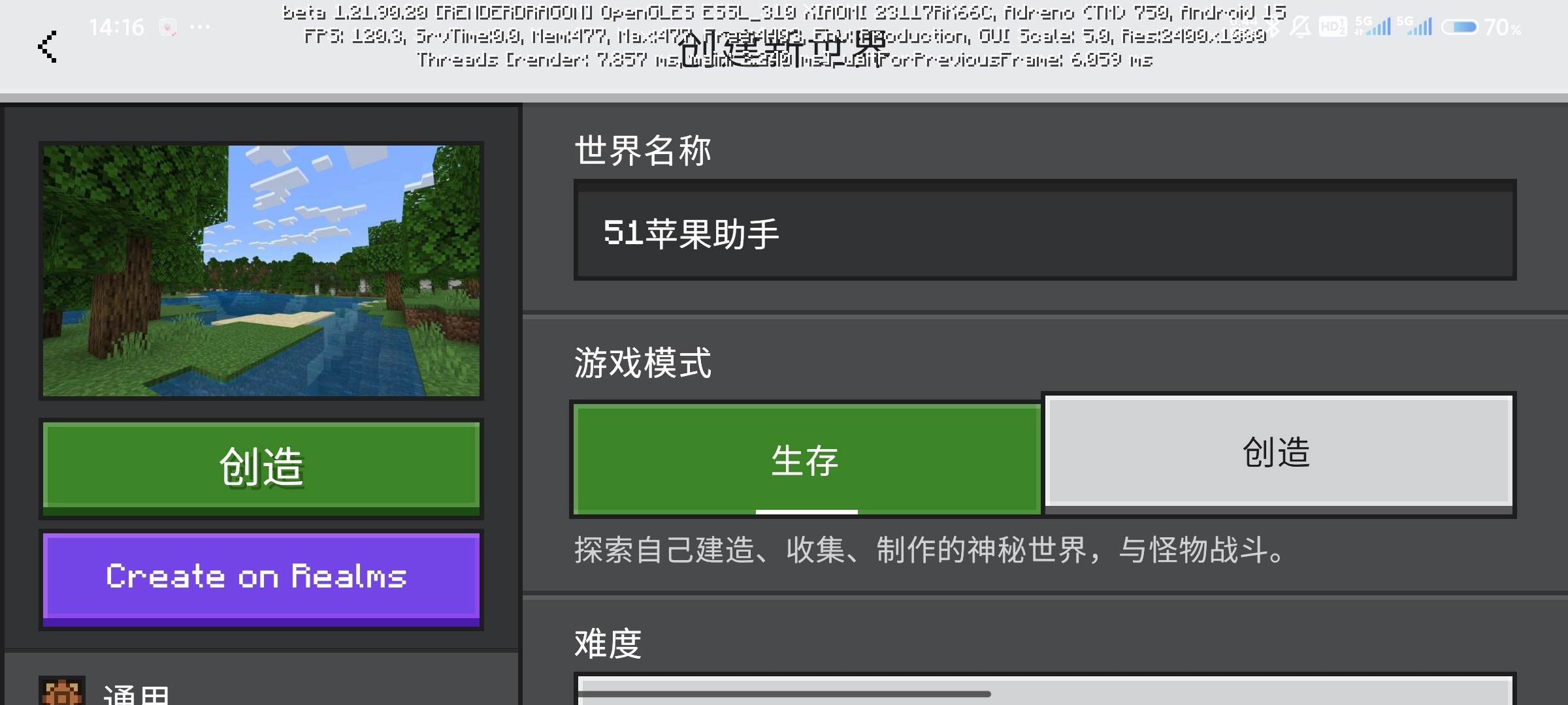 4、输入世界名称,选择模式、难度等,点击“创建世界”。