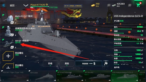 3、购买部分战舰,不仅要花费货币,还存在等级要求。不过,购买后能解锁更多武器与玩法。以图中战舰为例,玩家购买后,就能尝试驾驶AH64阿帕奇战斗机投入战斗。