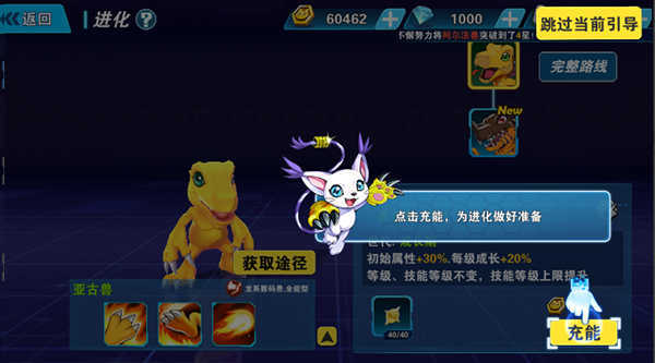 3. 轻点充能选项,为即将到来的进化预先做好准备。