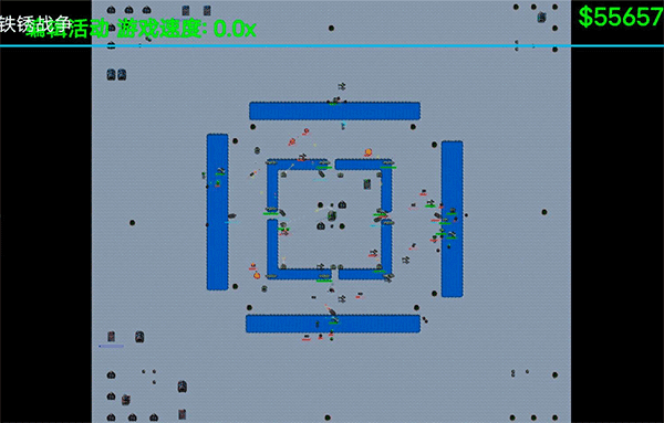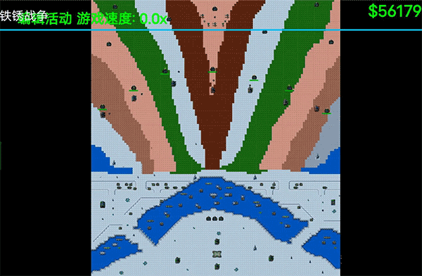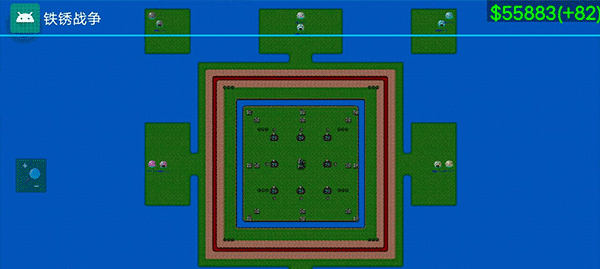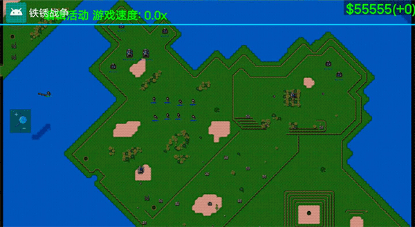 2. 铁锈战争的正版地图极为广阔,以像素画风精心打造,玩家能以上帝视角观察各个不同区域。